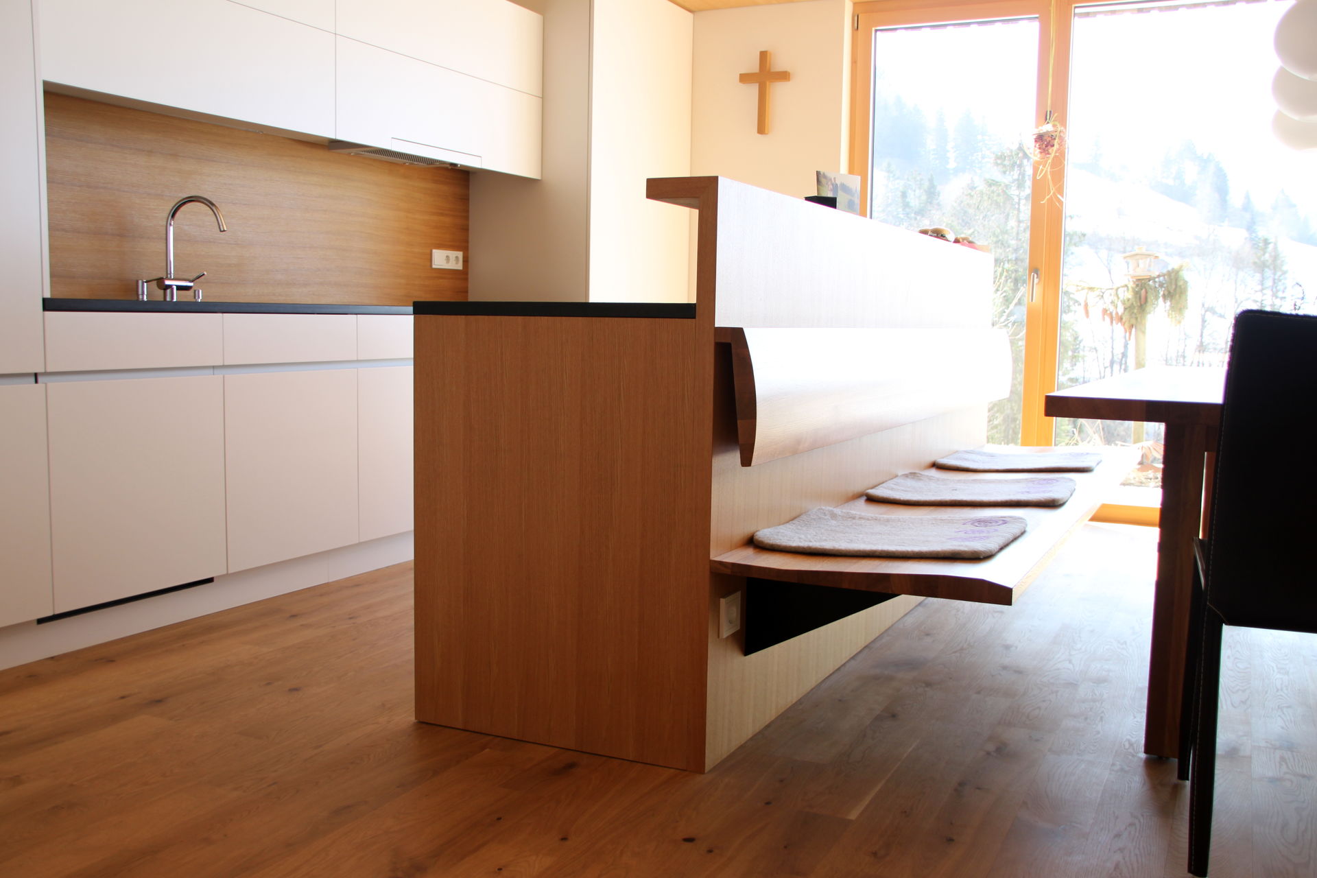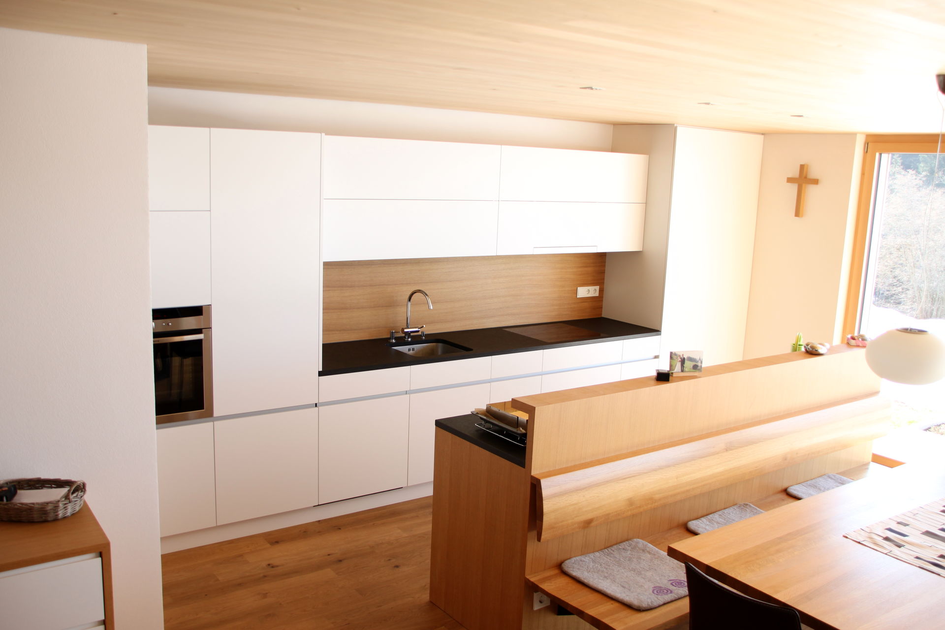 • Eichenbank an Rückwand von der Küche