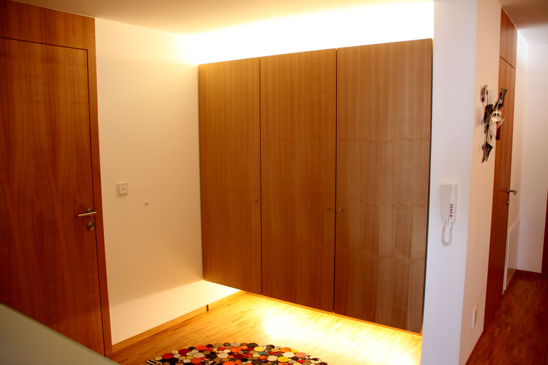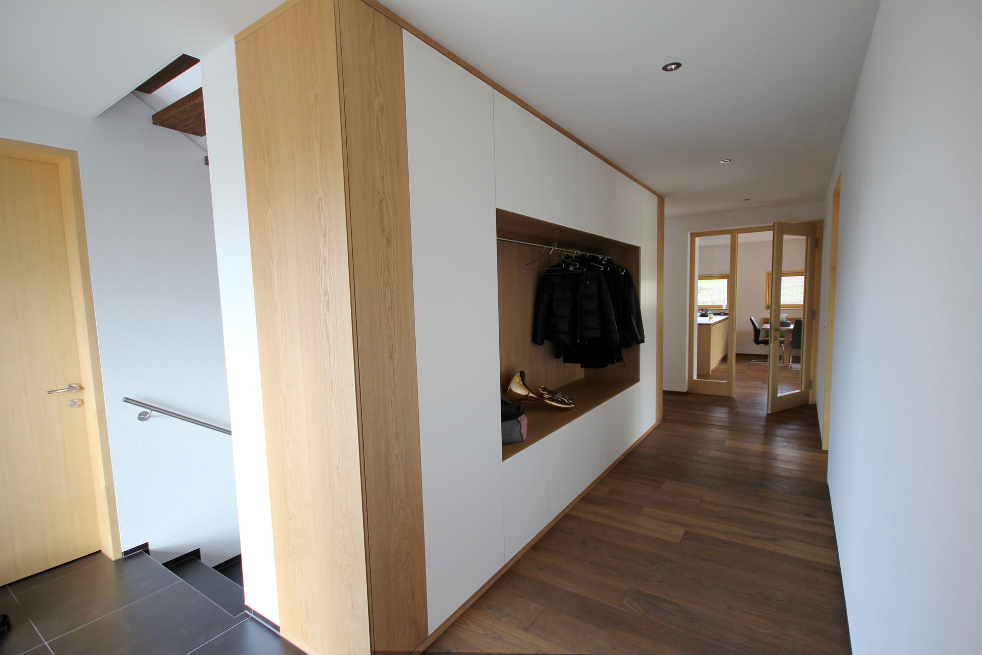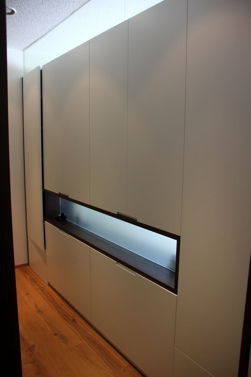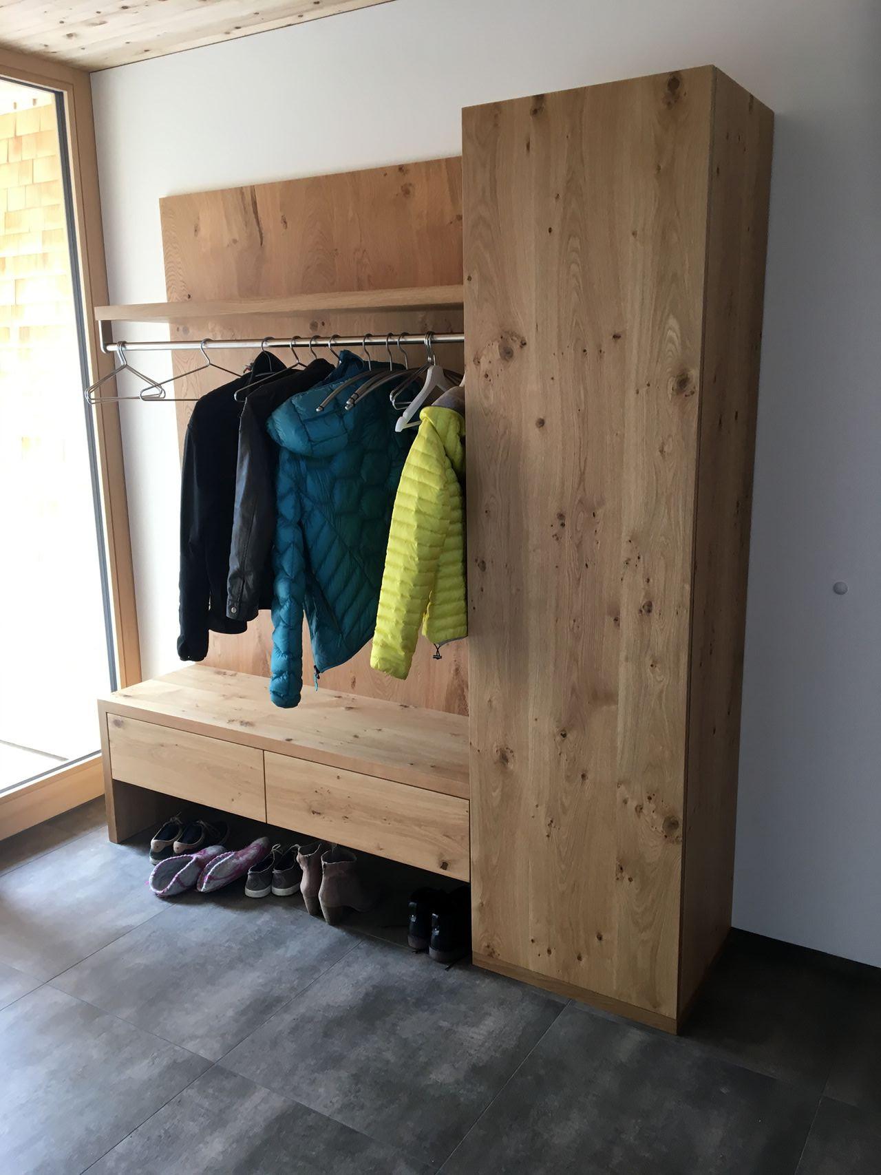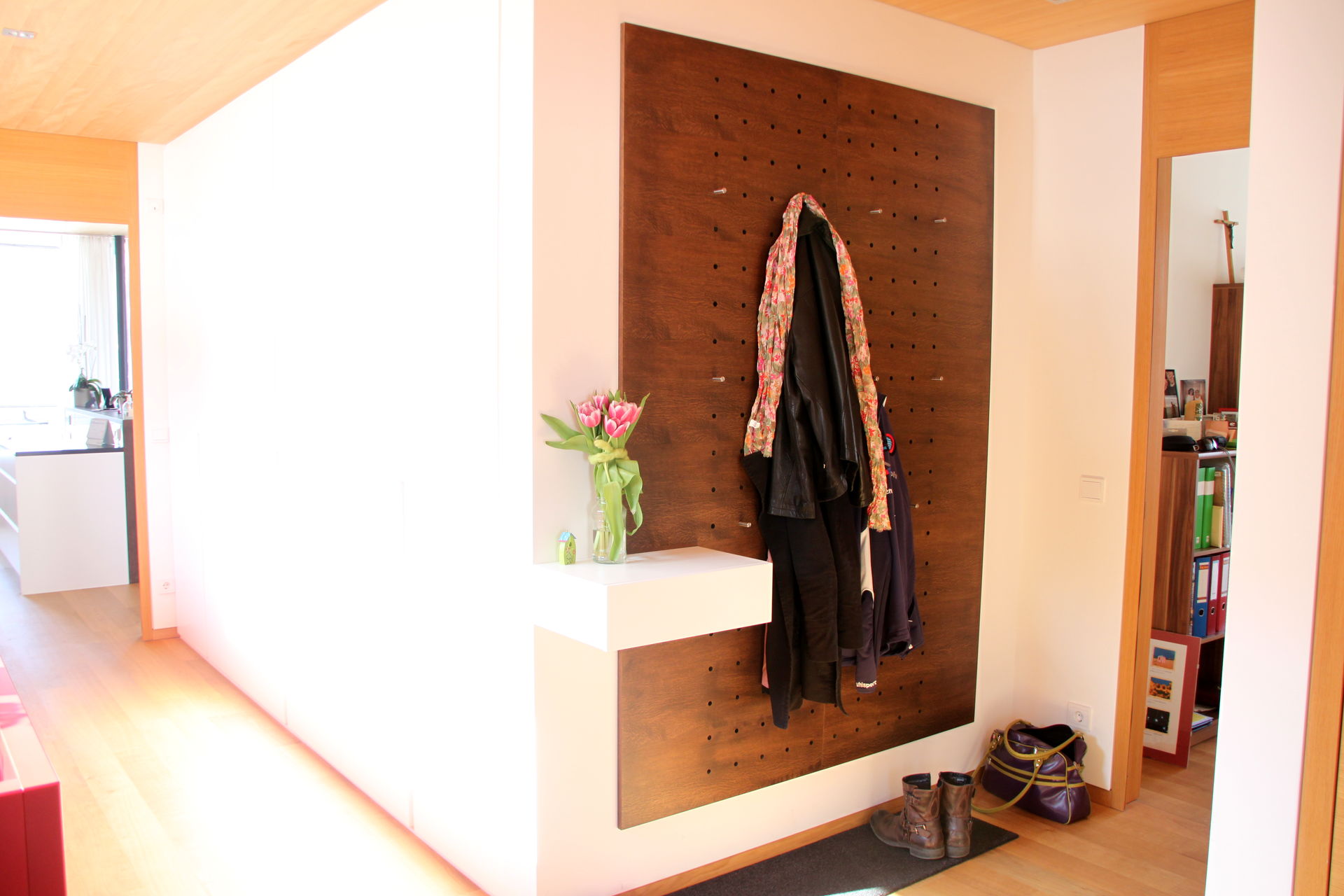 Wie auch die Garderobe im Eingangsbereich der Wohnung, sie schafft Stauraum und sorgt für Ordnung.