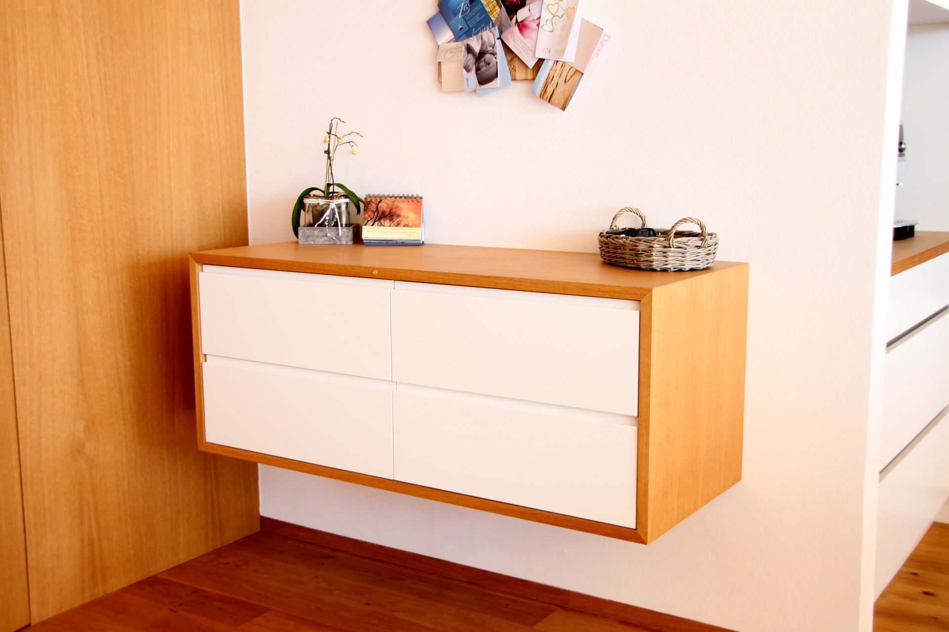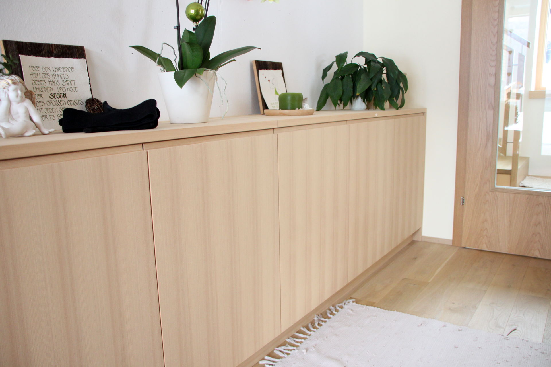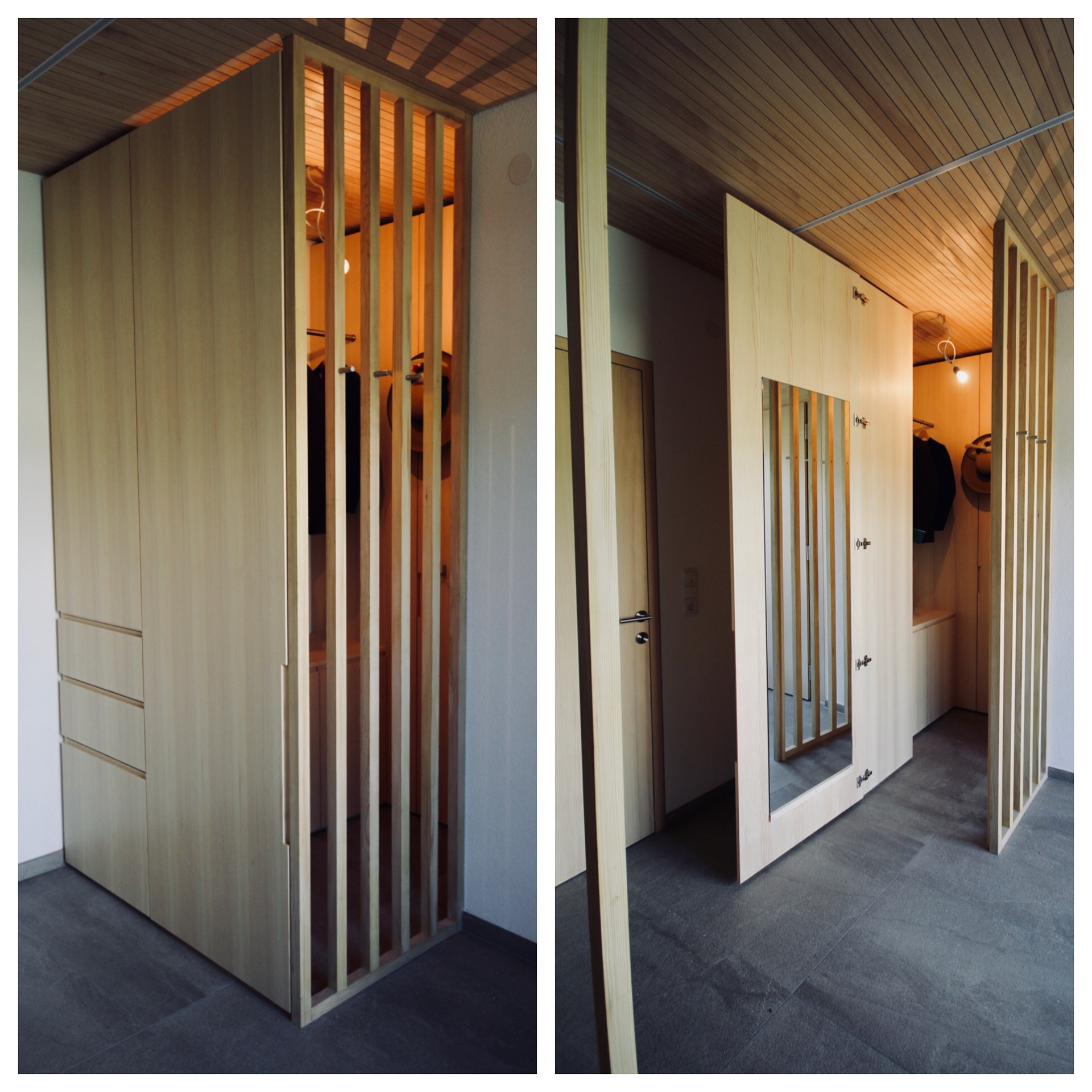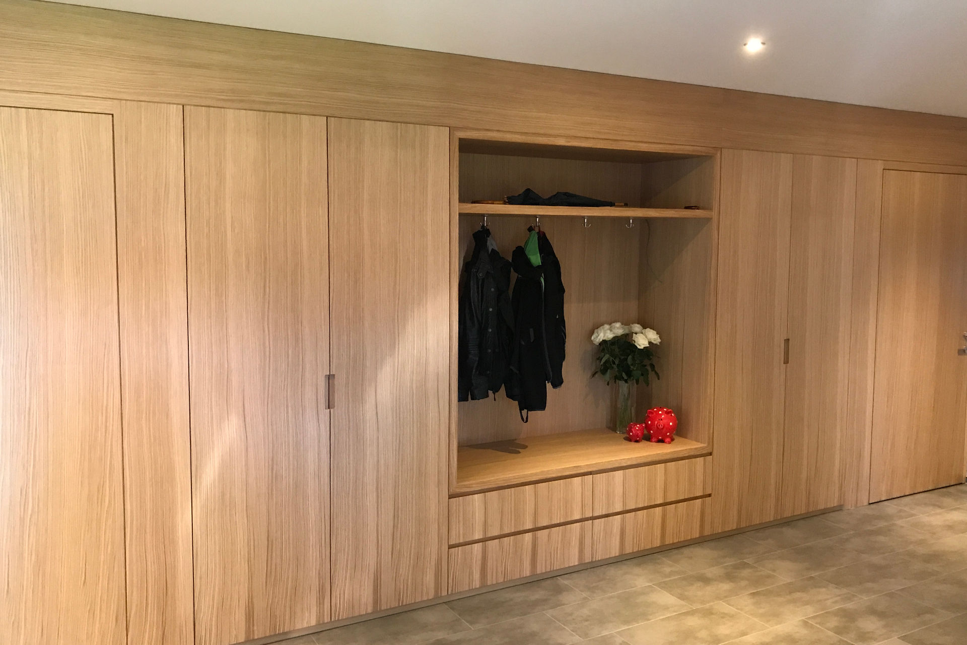 Wie auch die Garderobe im Eingangsbereich der Wohnung, sie schafft Stauraum und sorgt für Ordnung.