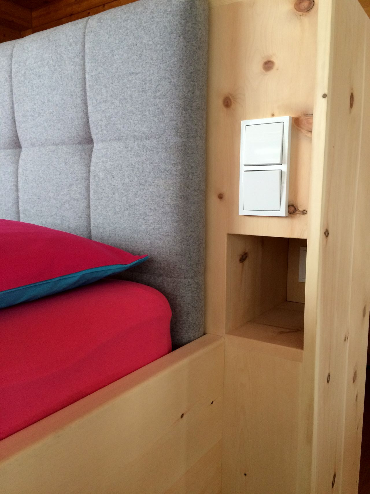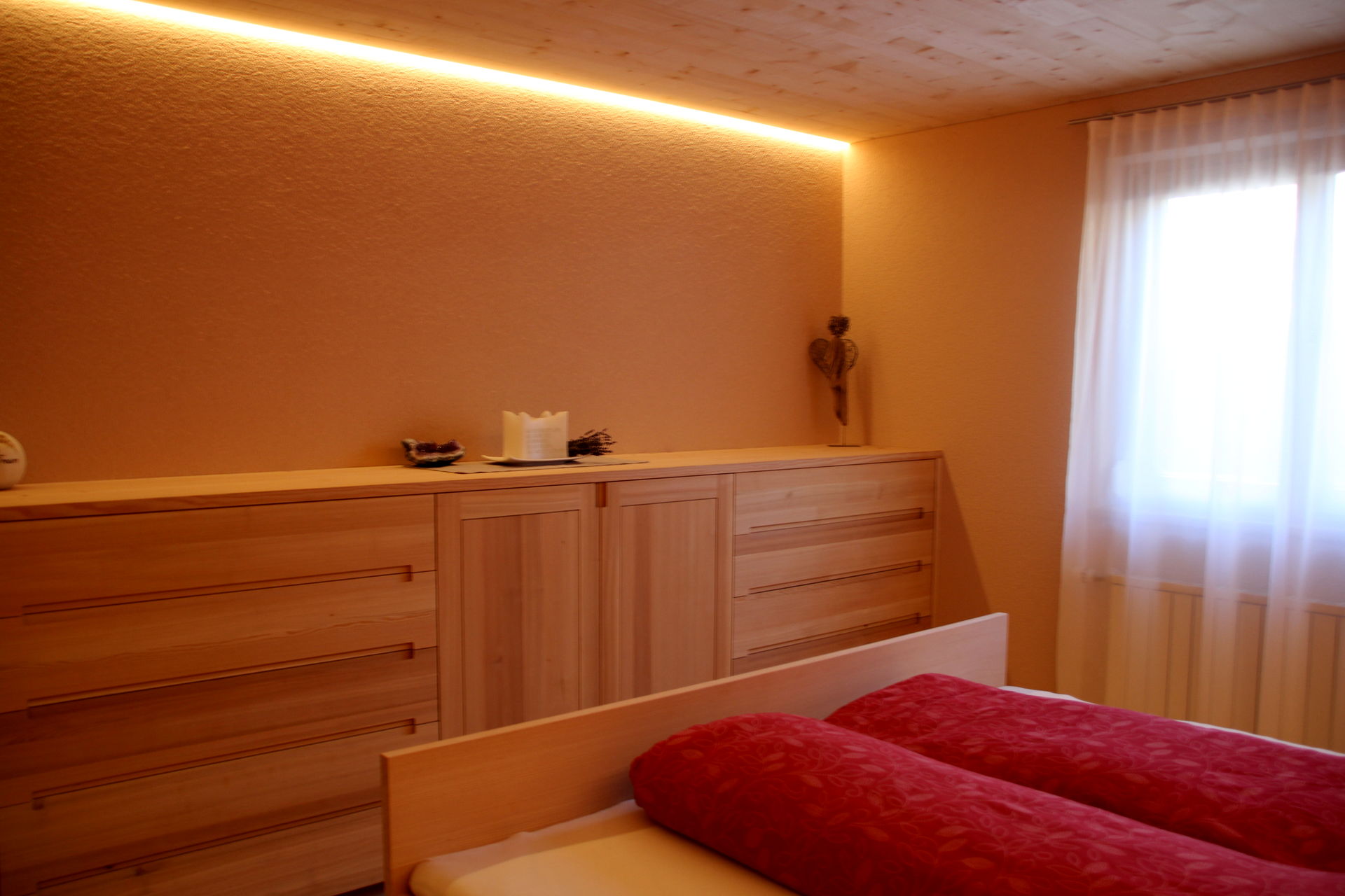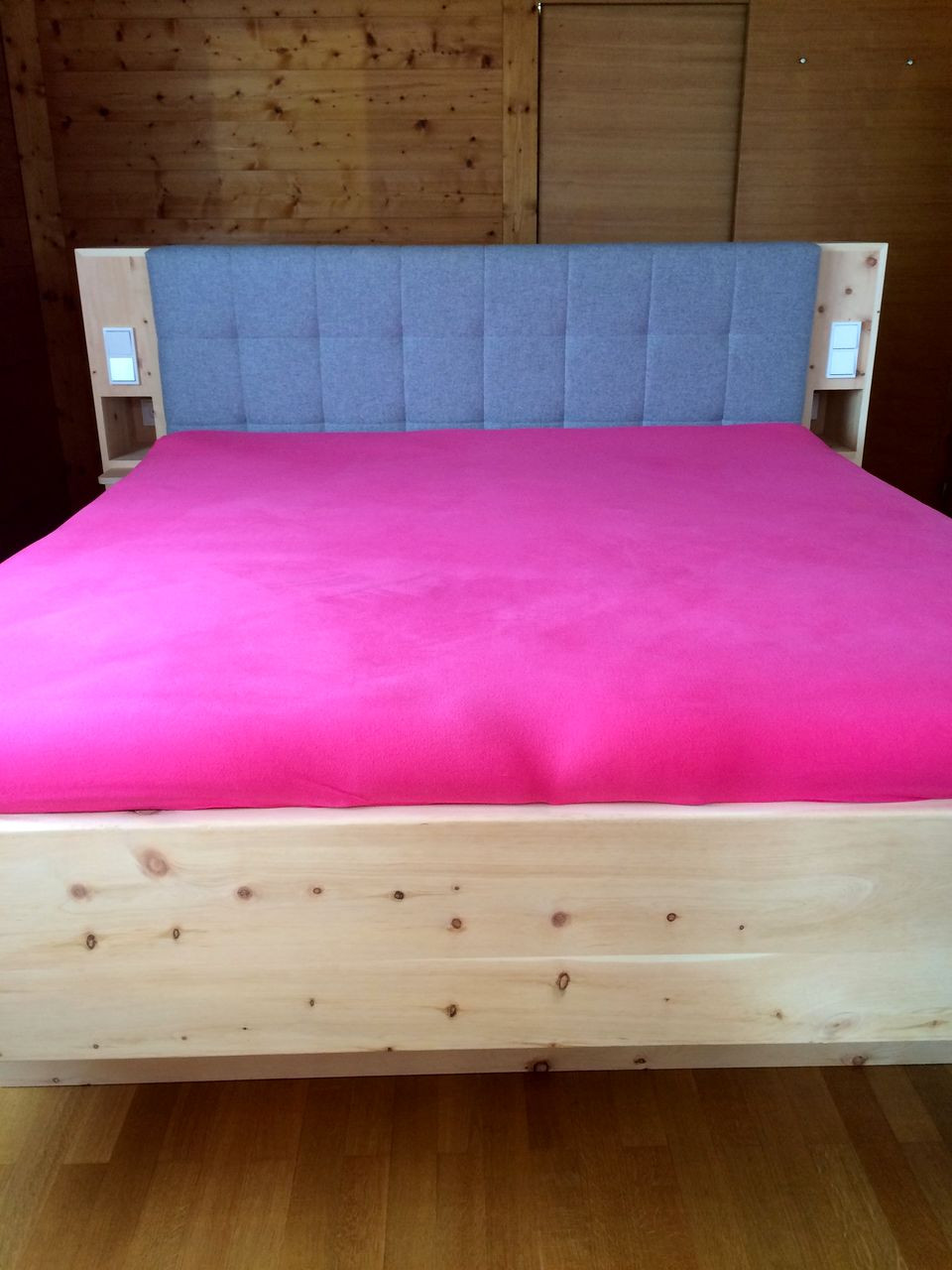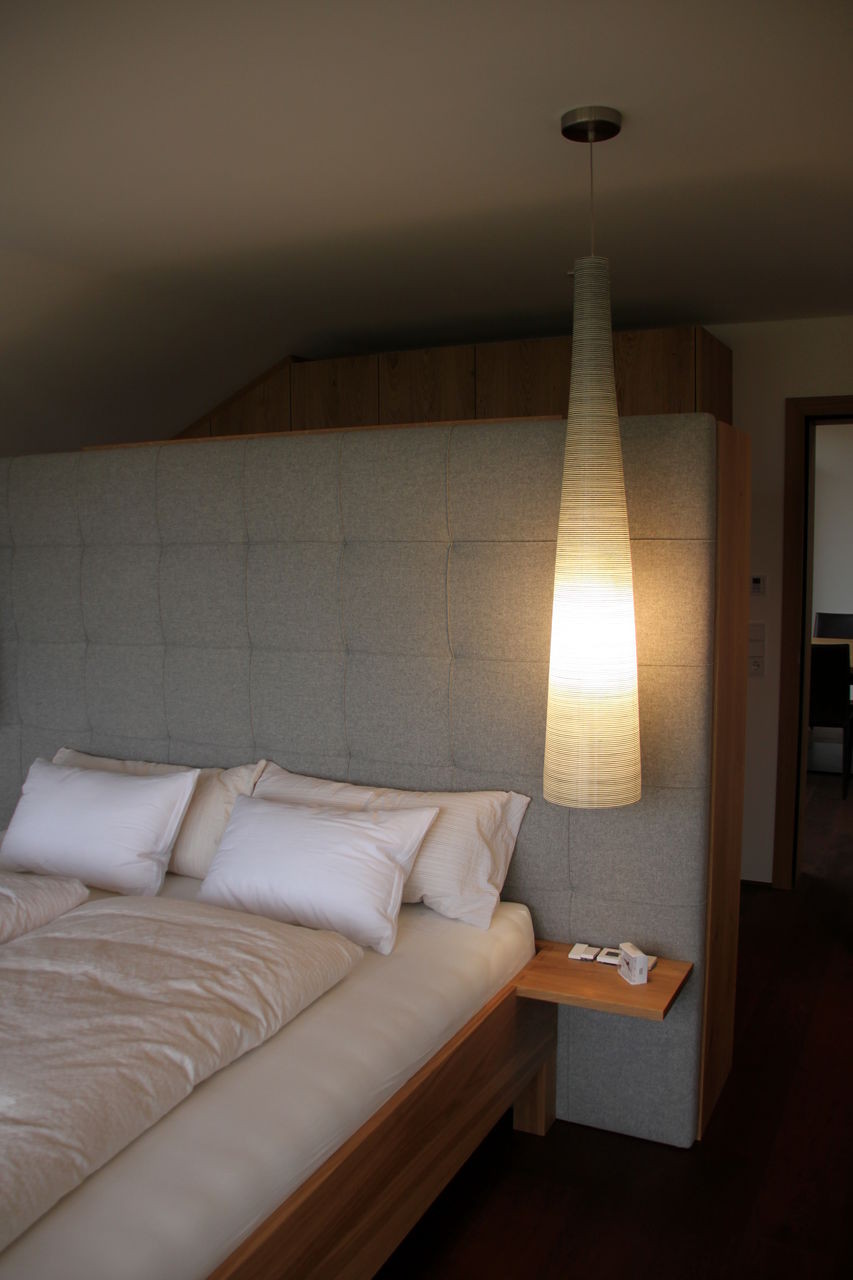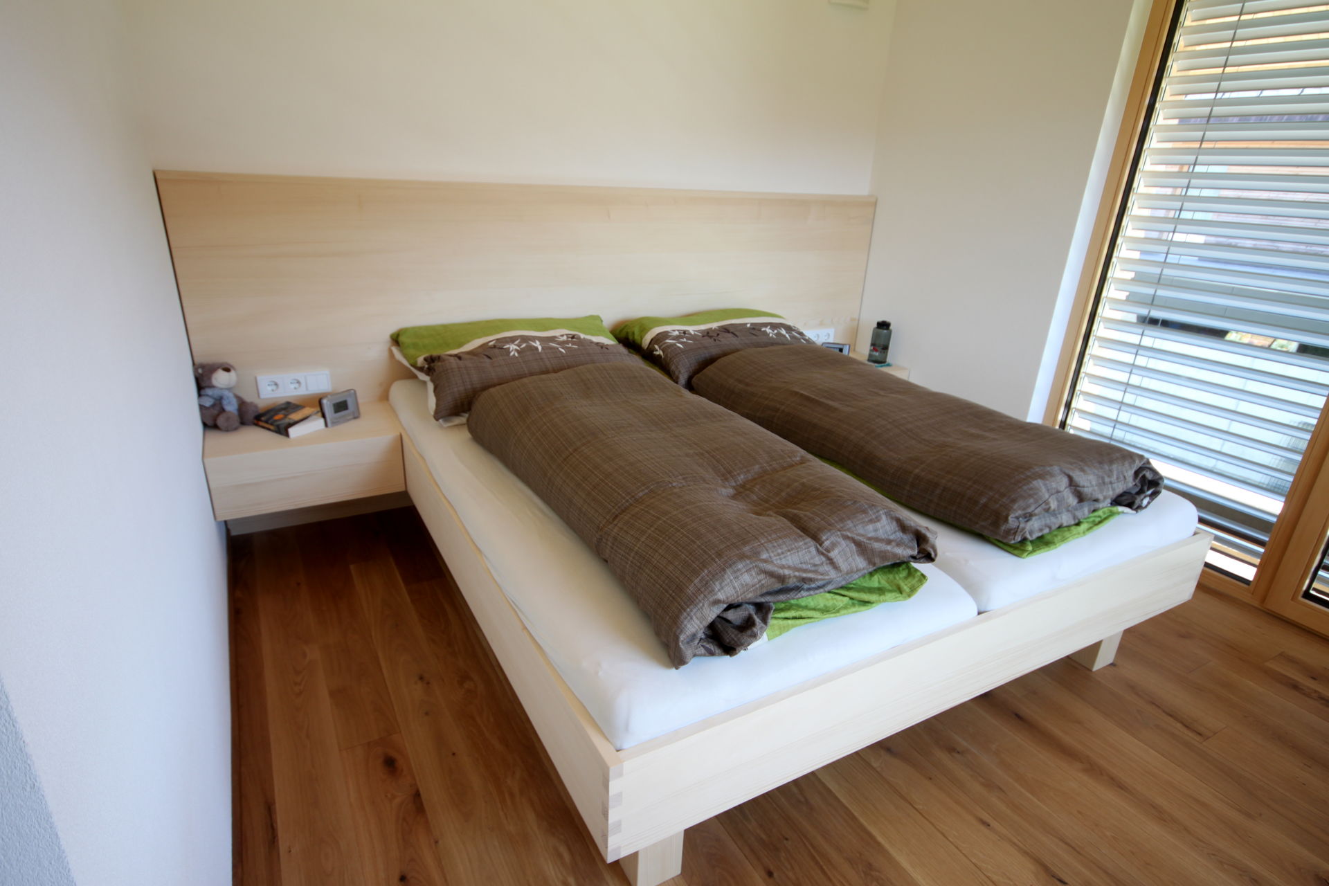 Nur wer tief und ungestört schläft, fühlt sich am nächsten Tag fit und leistungsfähig.Das Schlafzimmer ist vom Tischler - woher sonst?