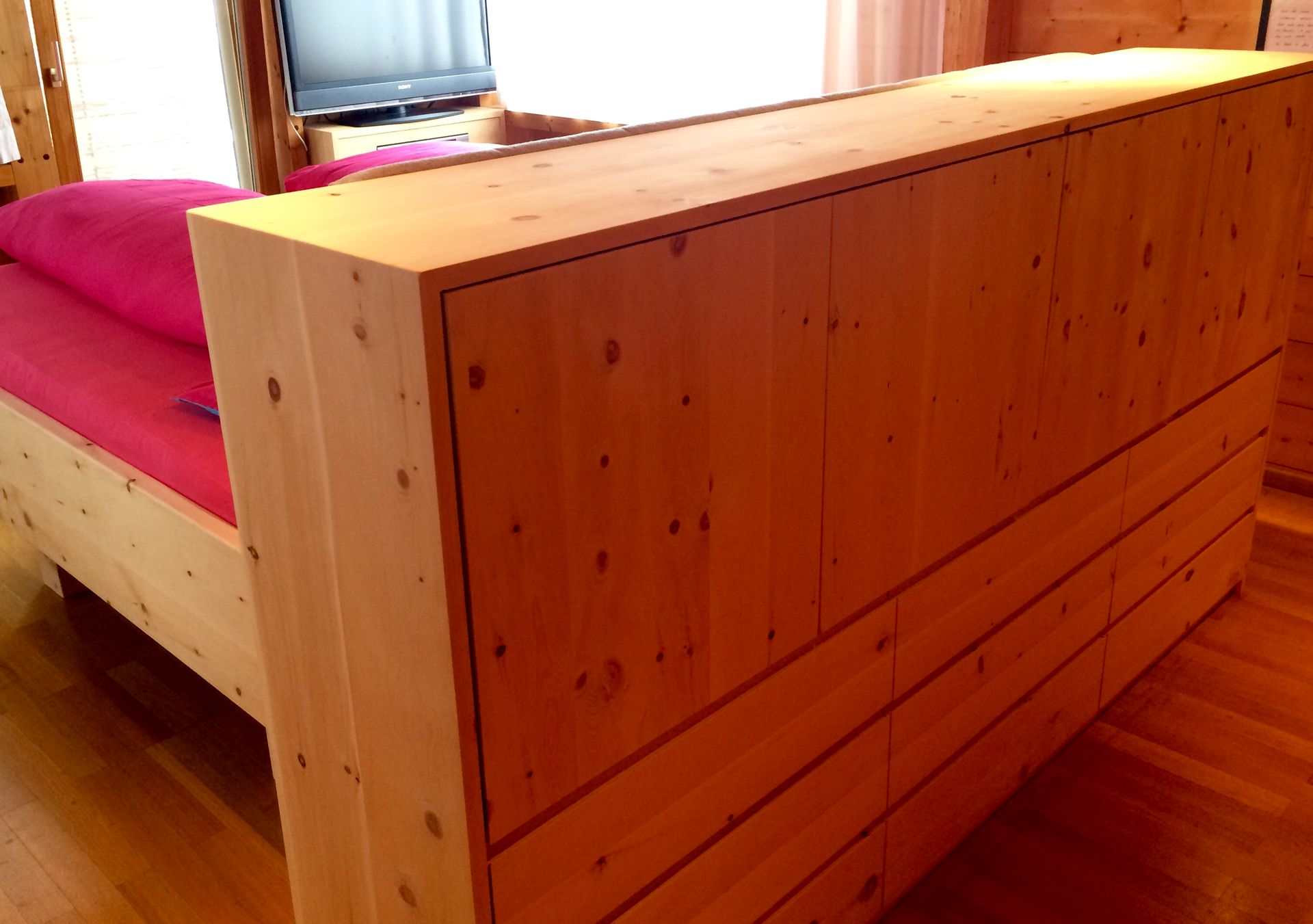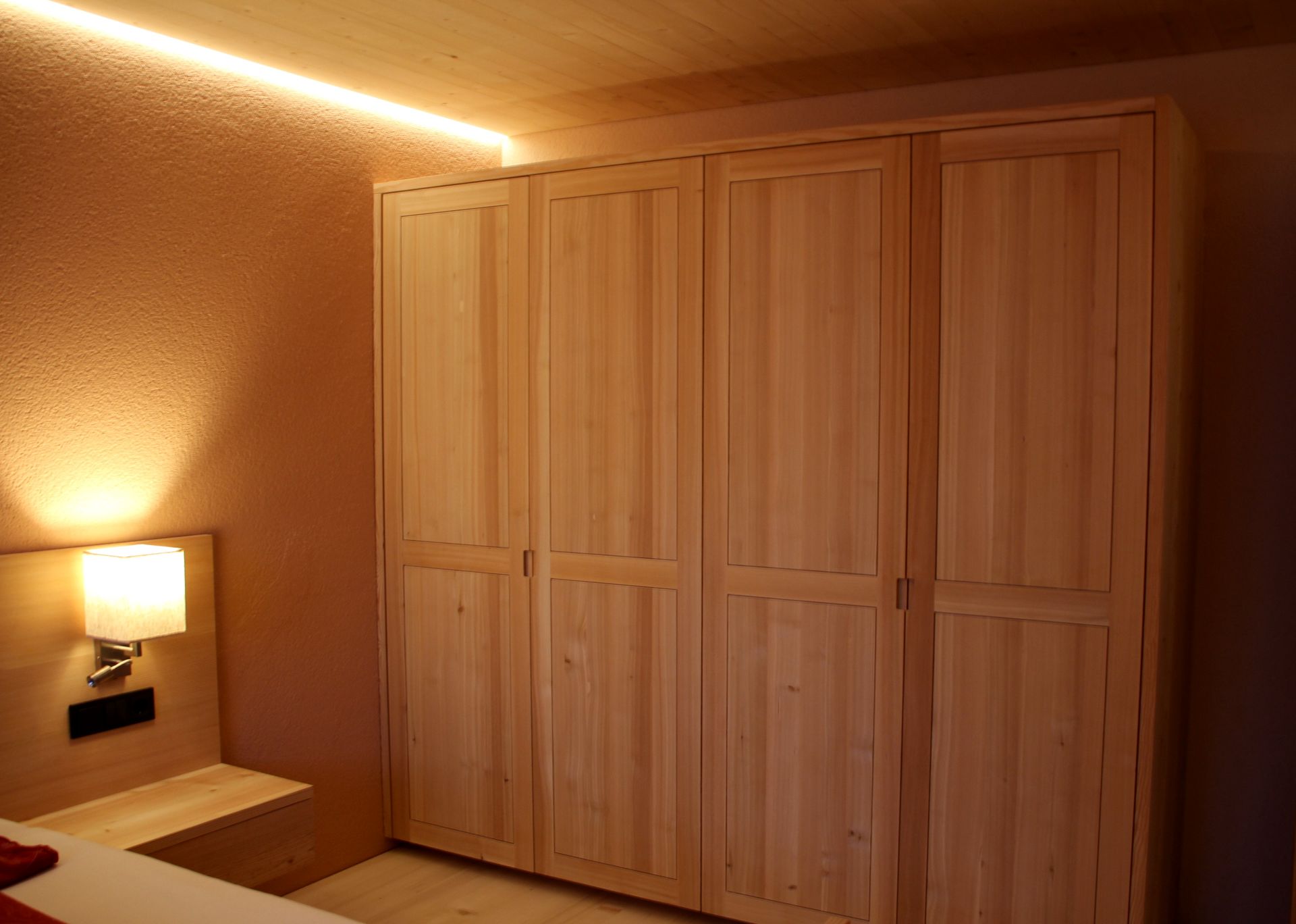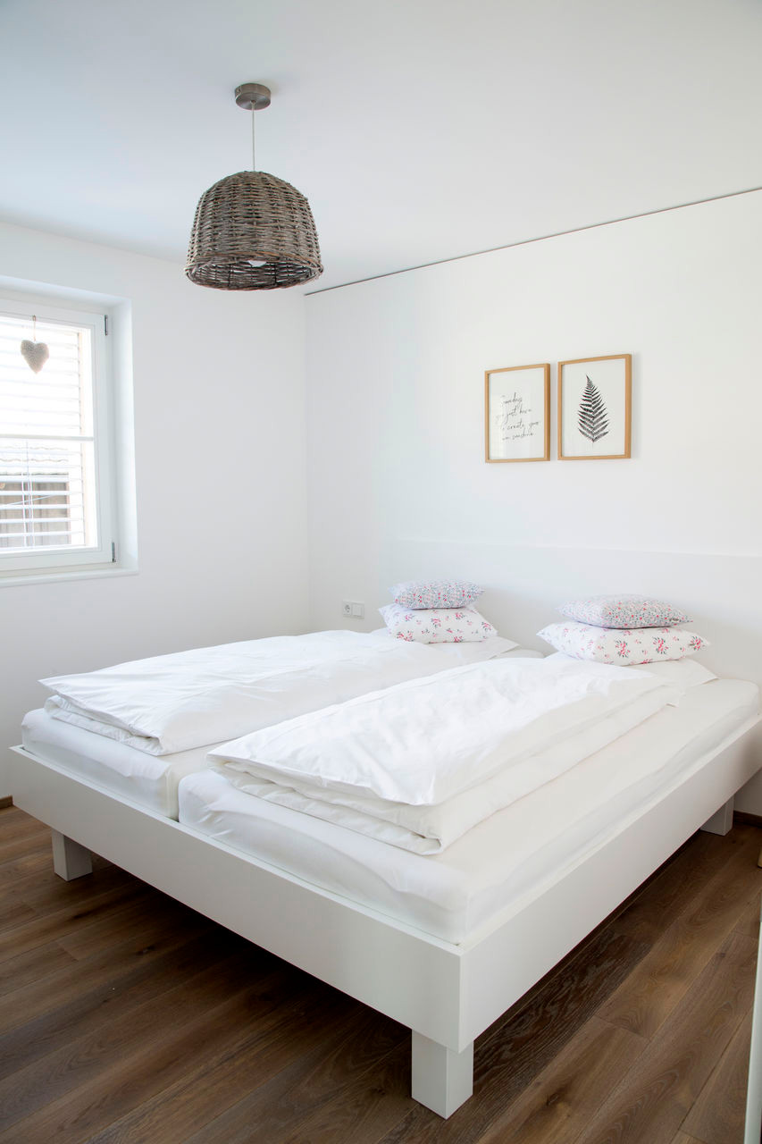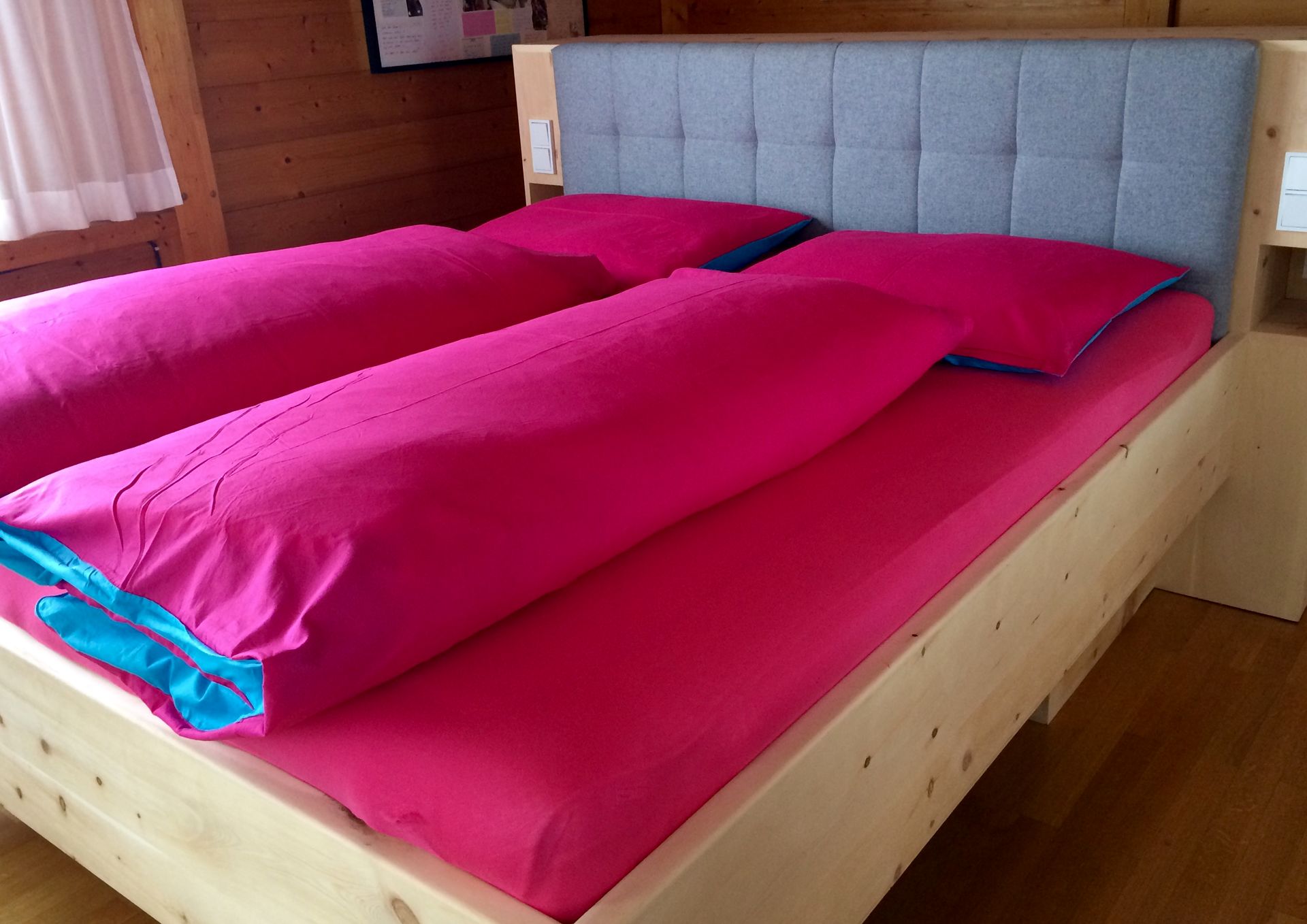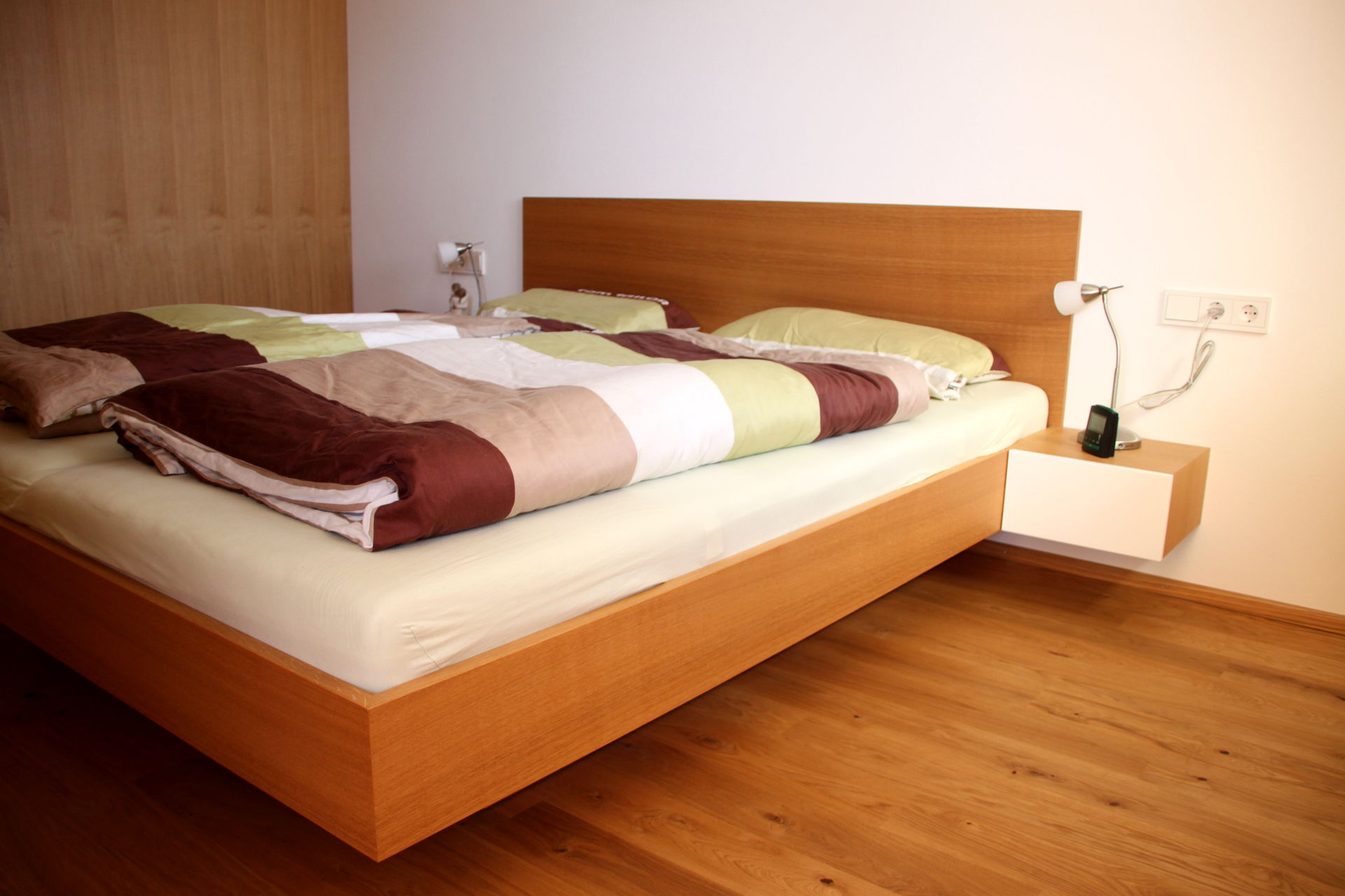 Nur wer tief und ungestört schläft, fühlt sich am nächsten Tag fit und leistungsfähig.Das Schlafzimmer ist vom Tischler - woher sonst?